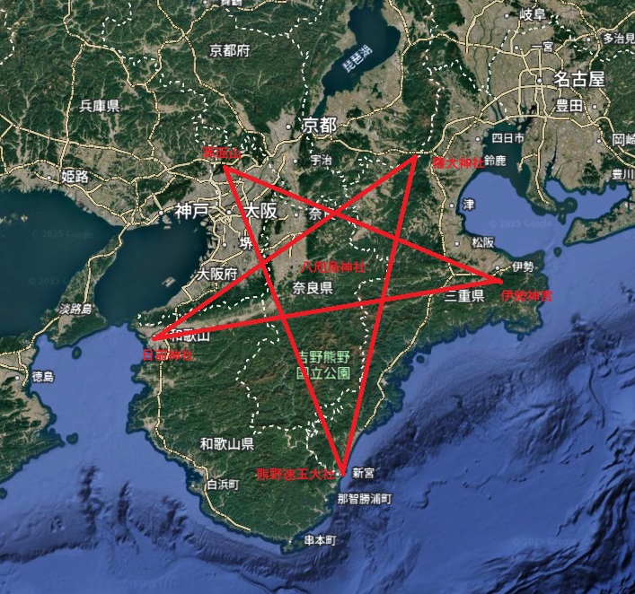 それらの場所を結ぶと逆五芒星になるとはスピ界ではよくある話です