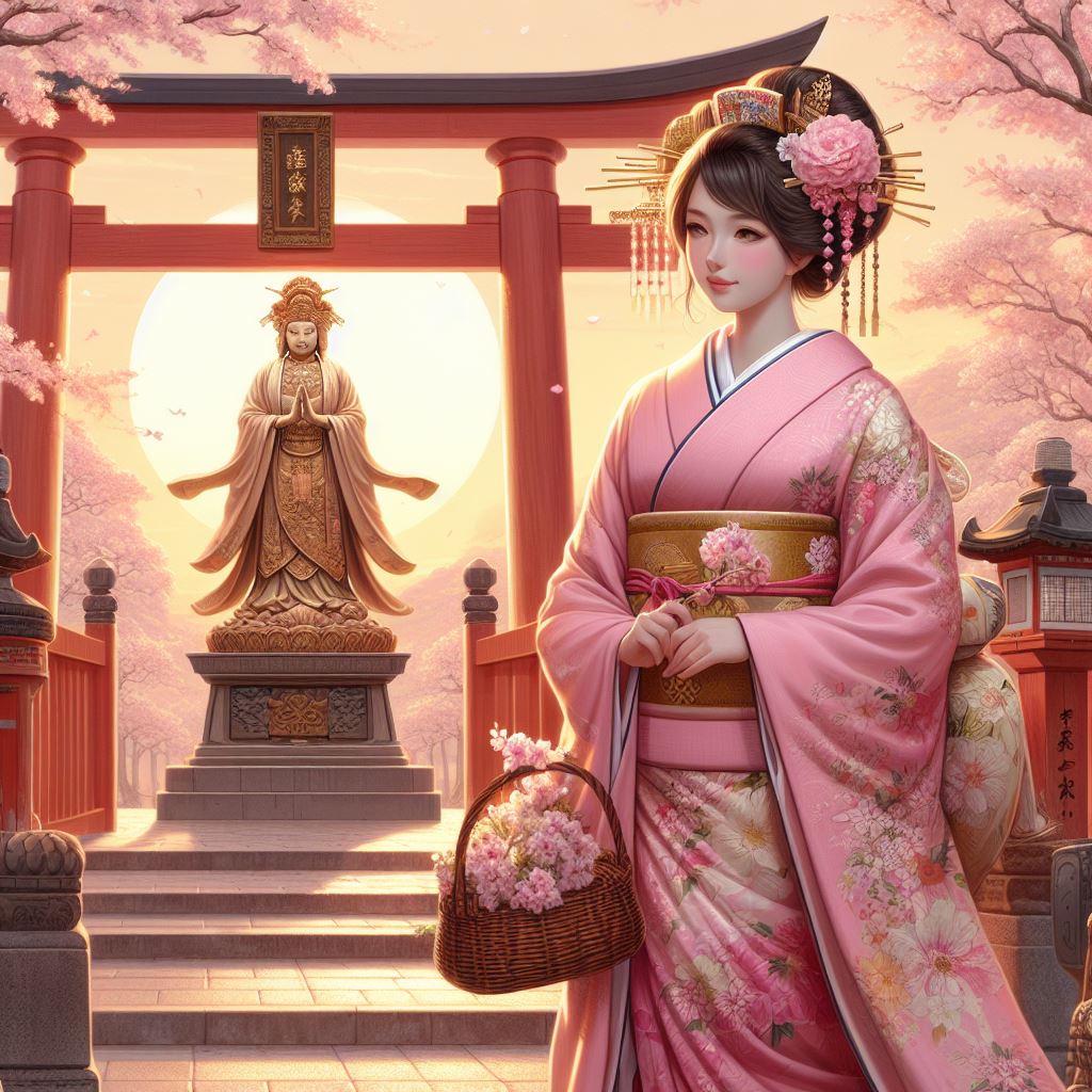鬼に案内されて本殿の中に入っていくと、そこには、着物を着た女神がいた